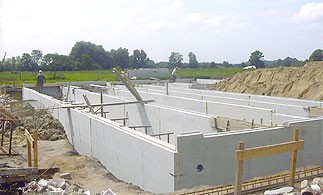 Ansicht Beton-Unterbau einer Rinderstallhalle aus dem EUBAU-Agrar-Bausystem.